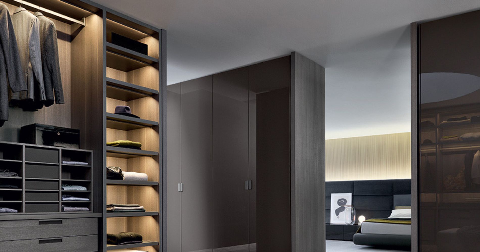 Escritorio para habitacion en color blanco con iluminacion led de 4500K, su fondo en textura de roble caramelo le da calides y sus largos shelf de almacenamiento son amplios y decorativos, ideal para habitaciones.